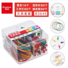 齊心B3645文具套裝(票夾/回形針/工字釘/橡皮筋)