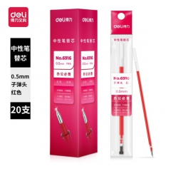 得力6916子彈頭按動(dòng)中性筆芯0.5mm紅色