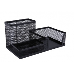 得力78987金屬網(wǎng)狀文件欄三欄帶筆筒黑色(文件框資料架)