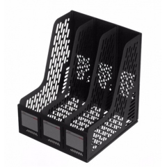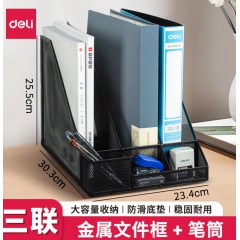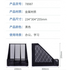 得力78987金屬網(wǎng)狀文件欄三欄帶筆筒黑色(文件框資料架)