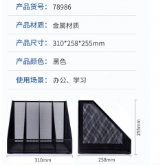 得力78986金屬網(wǎng)狀文件欄四欄黑色(文件框資料架)