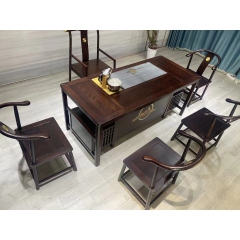 烏金色實(shí)木茶桌椅組合(1.6米茶桌+銅長(zhǎng)梳+2短凳+2圍椅 占地2.6*2.1)