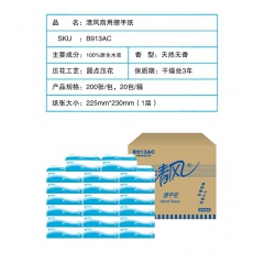 清風B913AC單層三折擦手紙200抽225*230mm