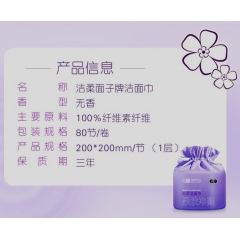 潔柔JJ001一01超柔潔面巾柔膚凈顏無(wú)香80節(jié)/卷(一次性洗臉巾)
