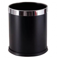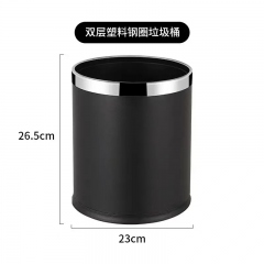 雙層塑料鋼圈圓形垃圾桶10L黑色