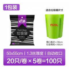 e潔DT135055-100手提式穿繩垃圾袋免撕式50*55CM(100只/包)