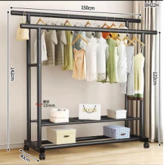 落地立式晾衣架雙桿雙層帶輪1.5米