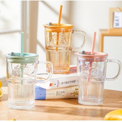 樂唯詩浮雕帶把吸管玻璃水杯 400m|