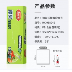 美麗雅HC088245盒裝抽取式保鮮袋大號25*35cm(100只/盒)