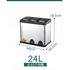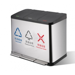 不銹鋼腳踏三分類垃圾桶帶蓋60L