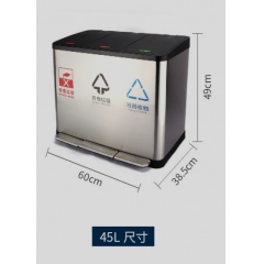 不銹鋼腳踏三分類垃圾桶帶蓋45L