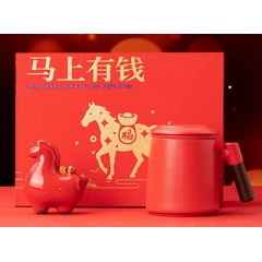 茶汀馬上有錢招財馬擺件辦公杯套裝