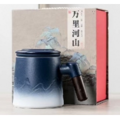 萬里河山瓷杯 拂器 山海陶瓷茶水分離辦公杯禮品盒BGB004