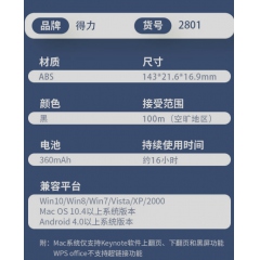 得力2801翻頁激光筆(黑色)(PET彩盒+泡殼)