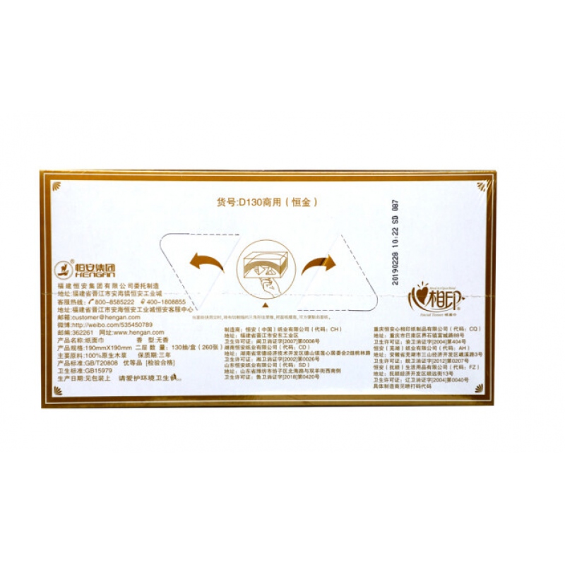 商品名稱:心相印D130商用硬盒抽紙130抽(二層,190*190mm)