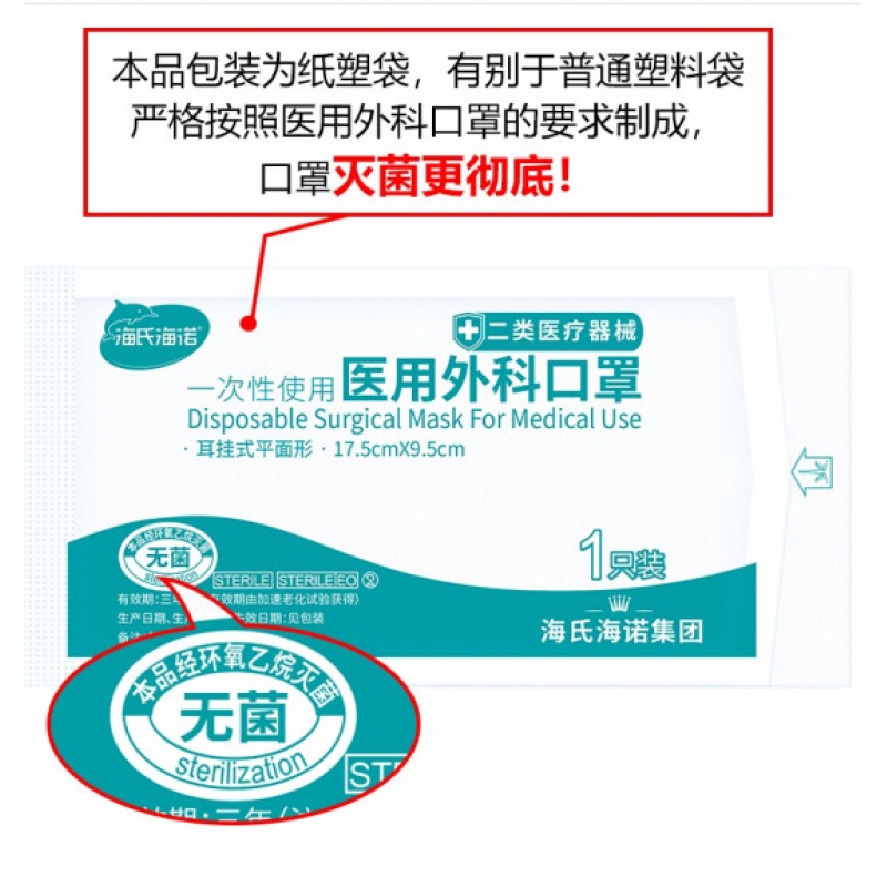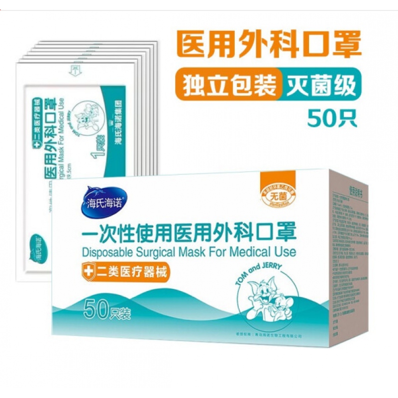 商品名稱:海氏海諾一次性醫(yī)用外科口罩獨(dú)立包裝50只/盒