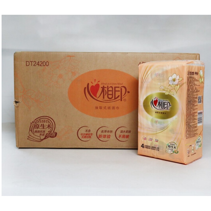 商品名稱:心相印DT24200抽紙3層120抽面巾紙新款80包/箱(4包/提,軟包抽紙)
