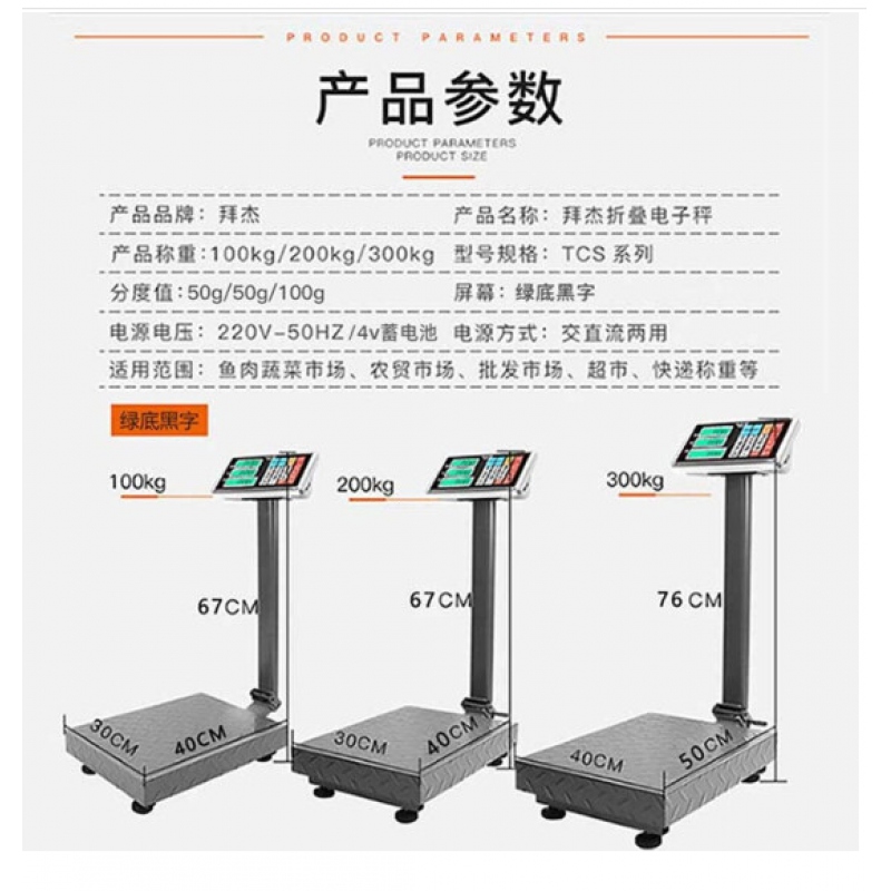 商品名稱:拜杰100KGTCS-100電子臺(tái)秤