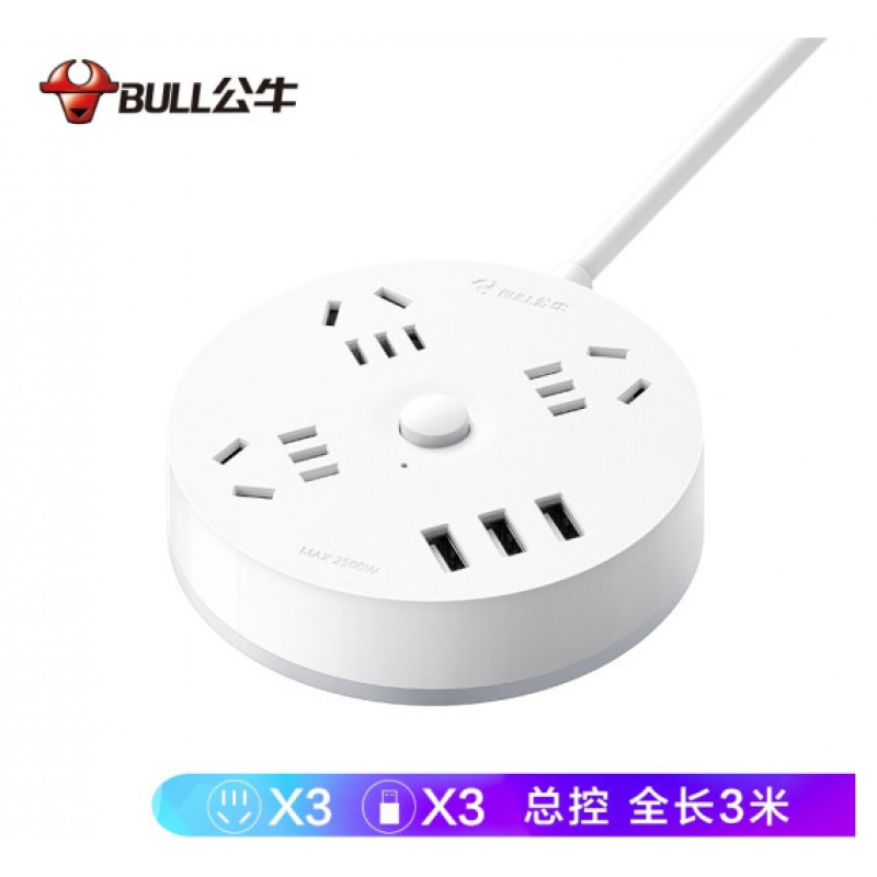 公牛GN-R203U接線(xiàn)板1.8m圓形帶USB