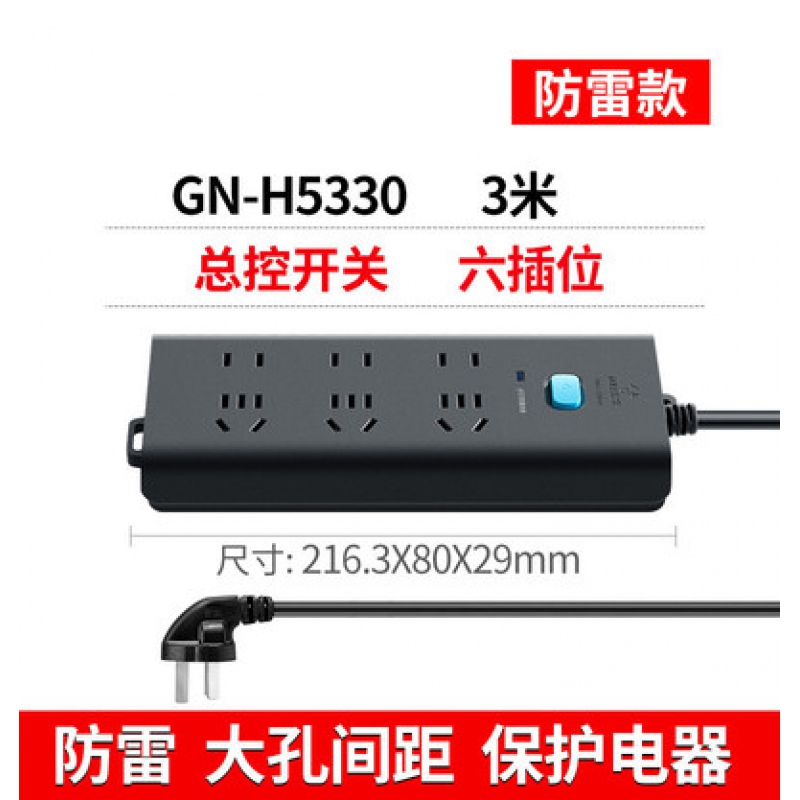 商品名稱:公牛GN-H5330H接線板3m防雷