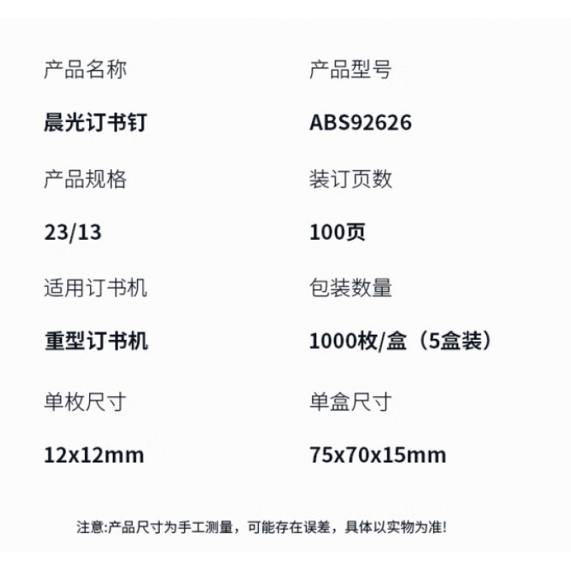 商品名稱:晨光ABS92626厚層訂書(shū)釘23/13