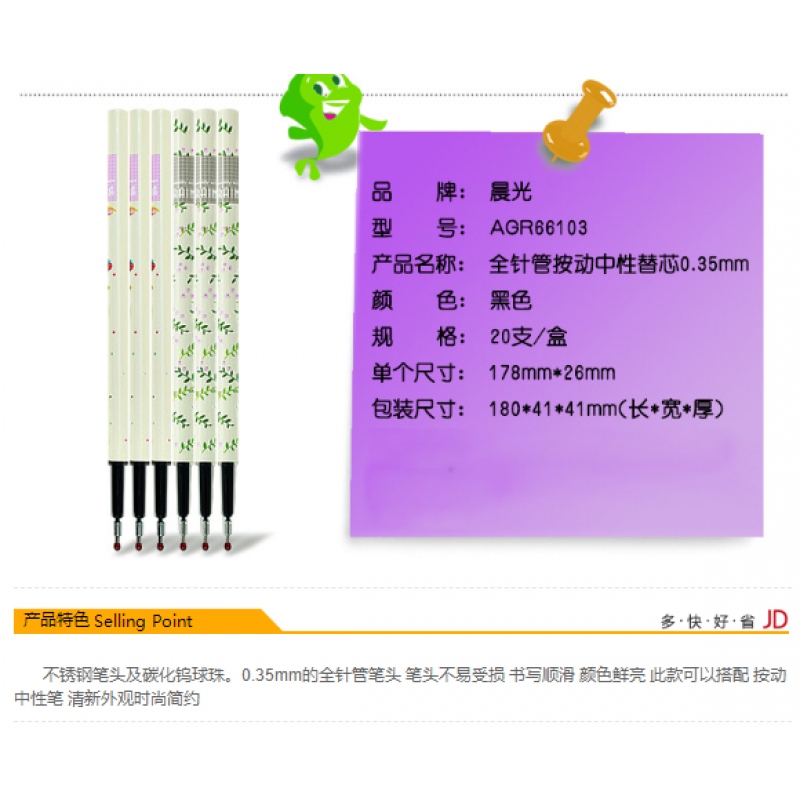 商品名稱:晨光AGR66103按動(dòng)中性筆芯按動(dòng)0.35mm黑色(全針管)