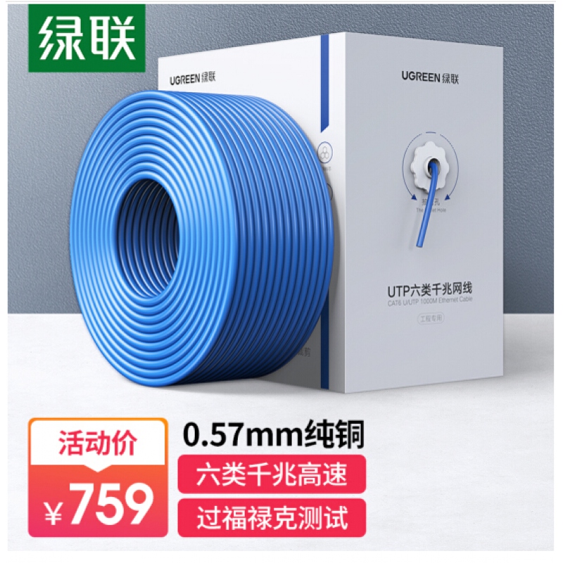 商品名稱:綠聯(lián)11259 NW109 UTP六類全銅非屏蔽成箱網(wǎng)線0.57 305米