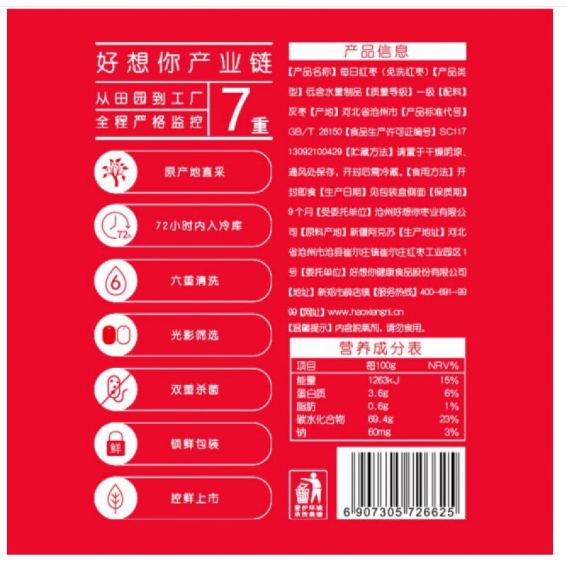 商品名稱:好想你每日紅棗840G