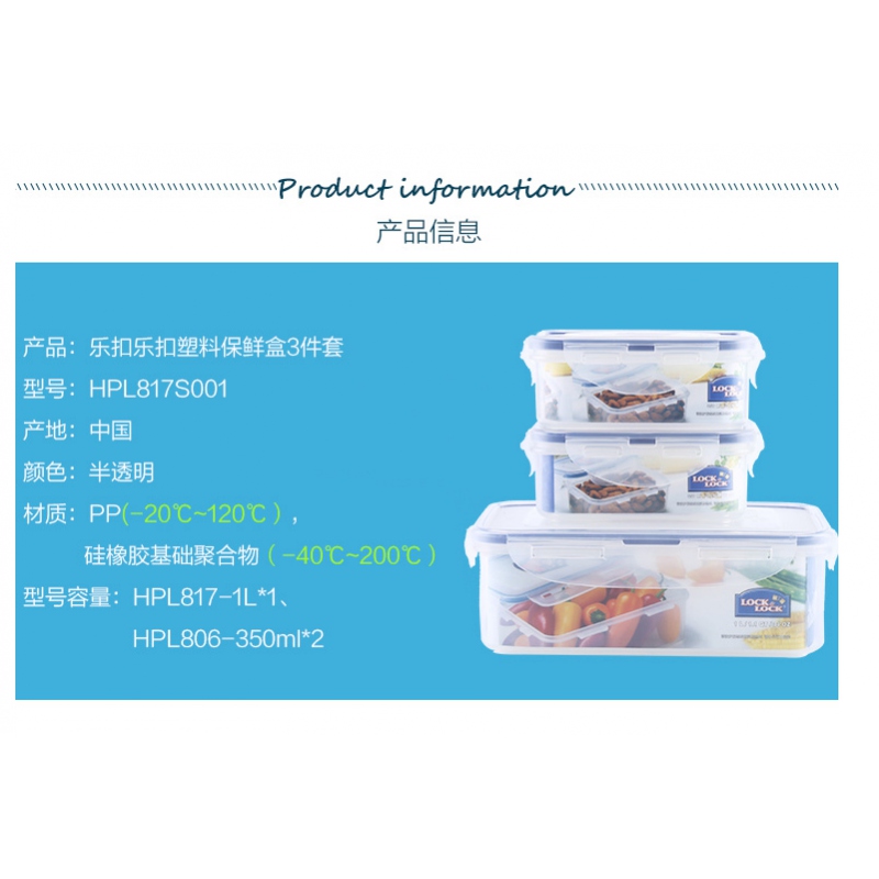 商品名稱:樂扣樂扣HPL817S001塑料保鮮盒3件套裝