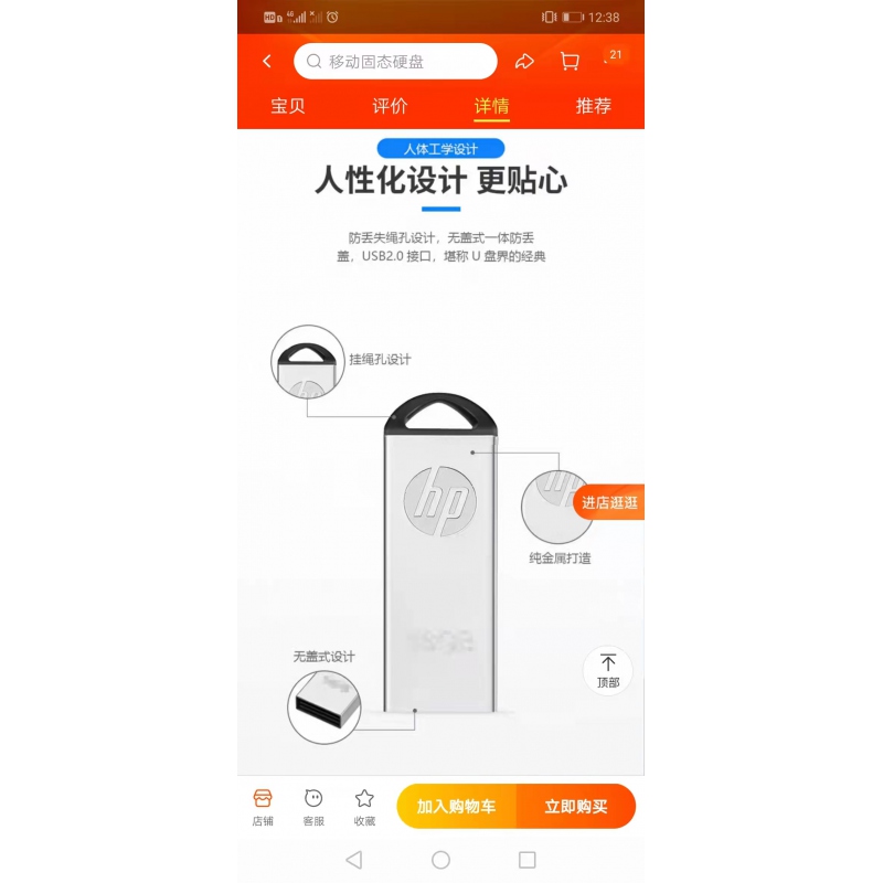 商品名稱(chēng):惠普U盤(pán) V220W 32GB (銀黑) USB2.0