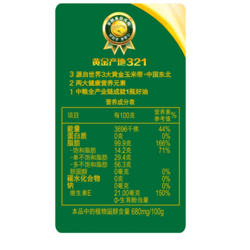 商品名稱:禁用 福臨門黃金產(chǎn)地非轉(zhuǎn)基因玉米油1.8L