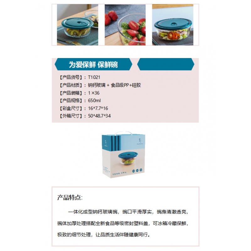 商品名稱:皖亭T1021玻璃保鮮碗650ml單個裝
