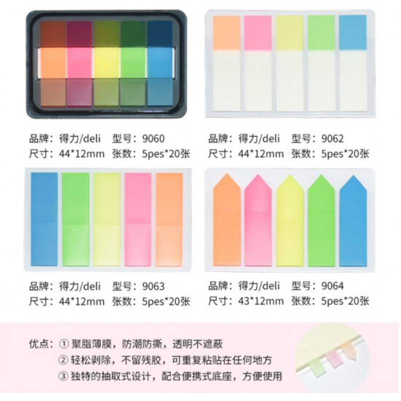 商品名稱:得力9060抽取式指示標簽12*44mm