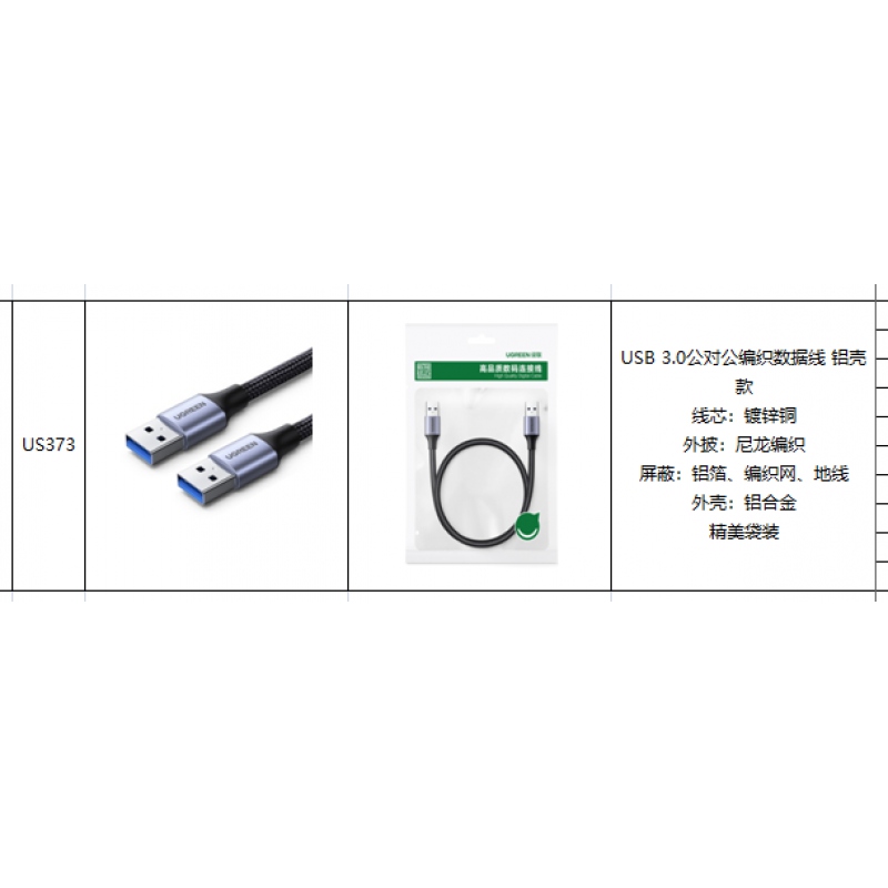 綠聯(lián)高清連接線 USB3.0公對公 鋁殼編織款 2米