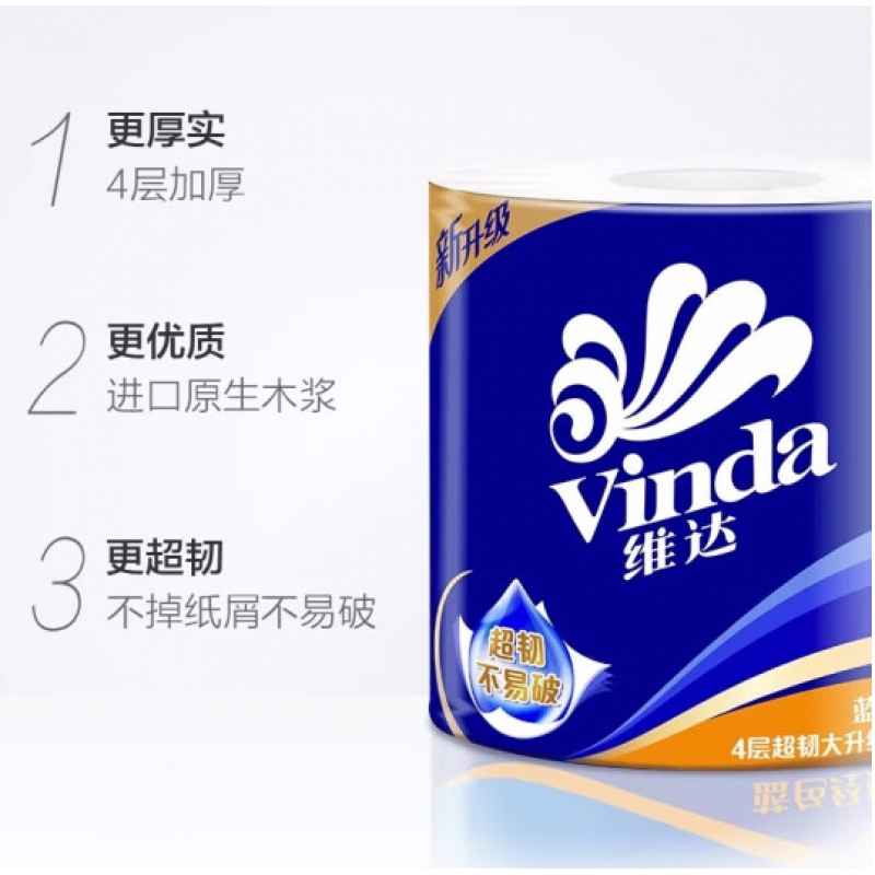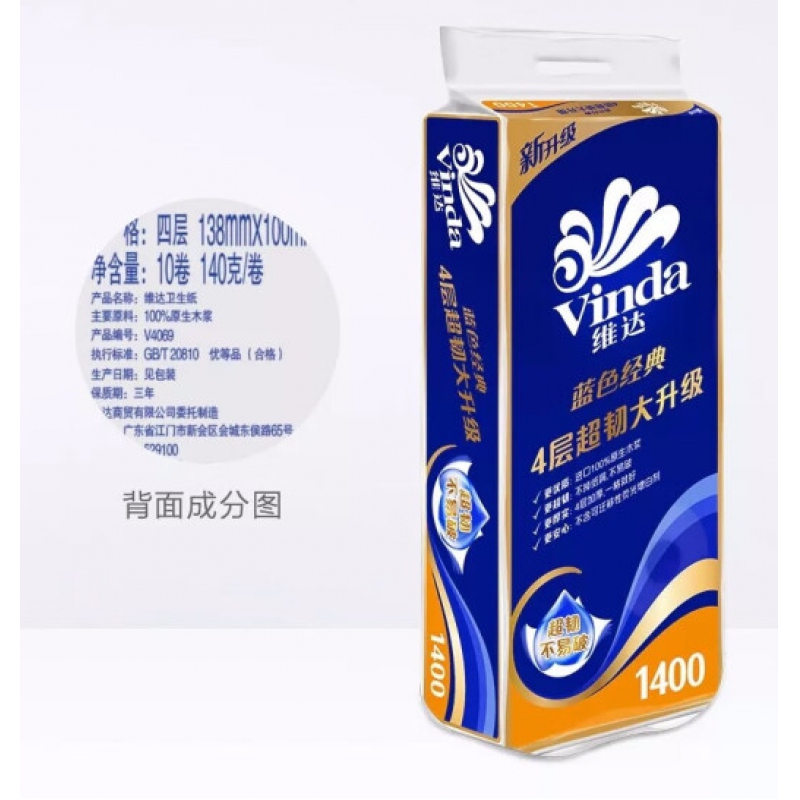 商品名稱:維達(dá)V4069藍(lán)色經(jīng)典超韌有芯卷紙四層140克/卷,10卷/提