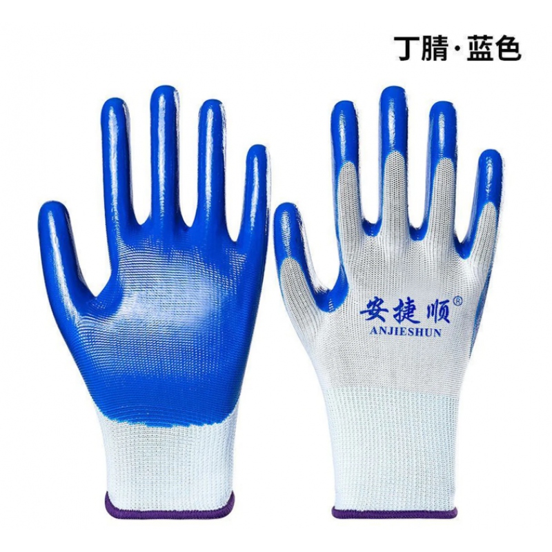 安捷順丁腈浸膠耐磨手套白紗藍(lán)膠