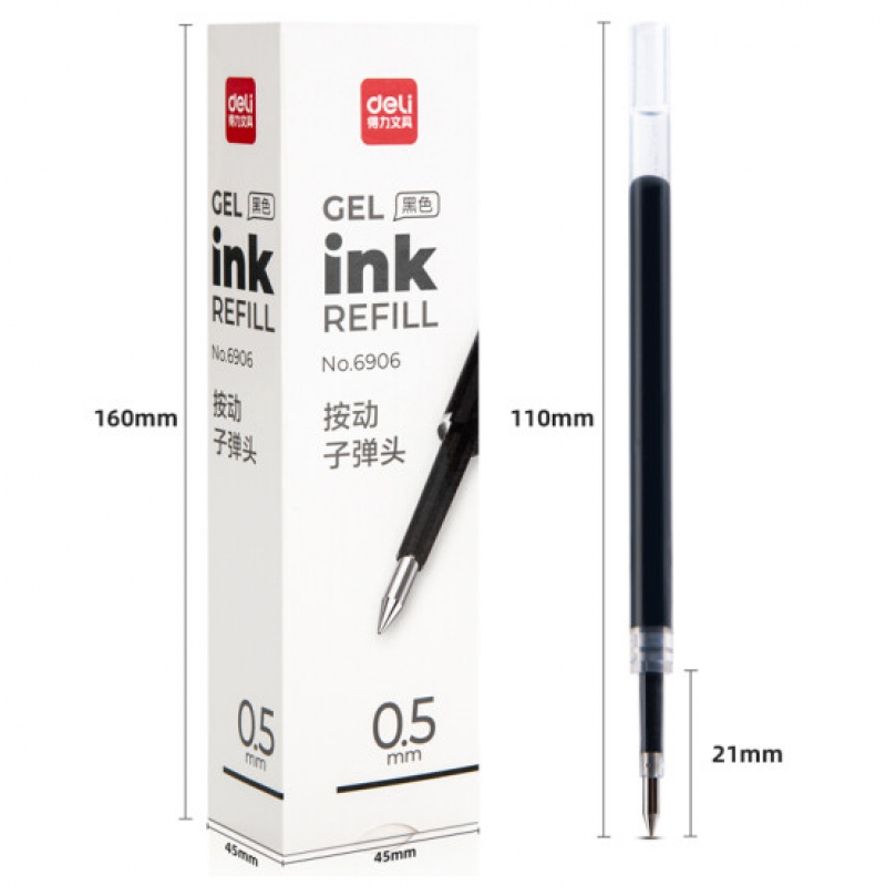 得力6906子彈頭按動(dòng)中性筆芯0.5mm黑色