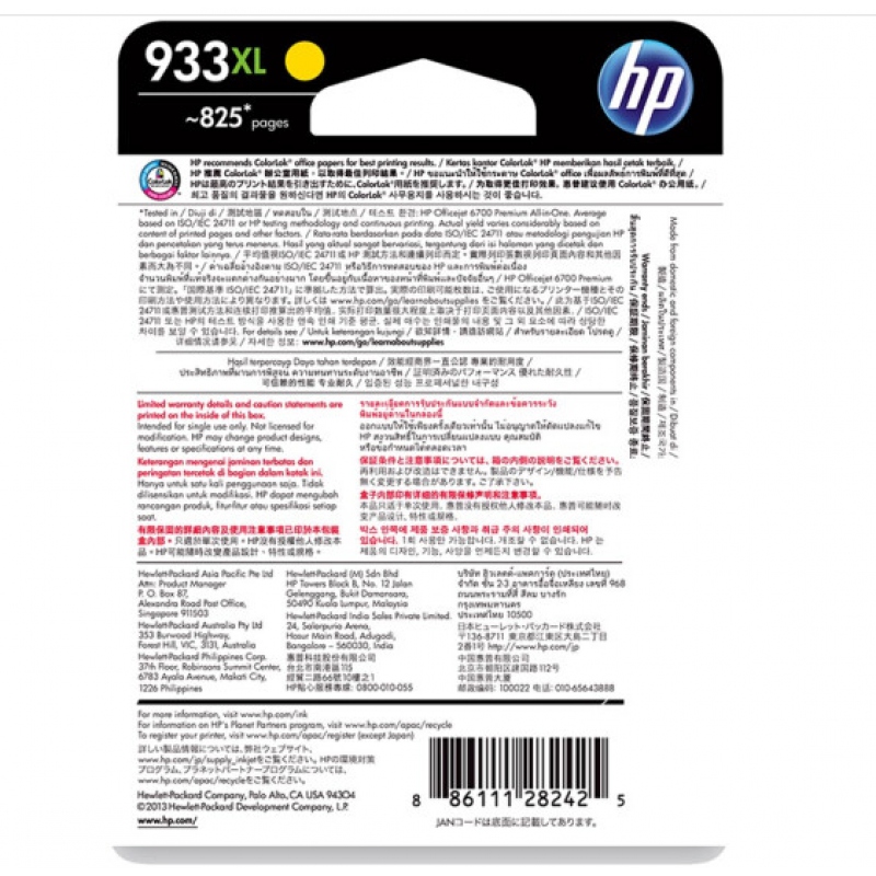 惠普HP大容量墨盒CN056AA(933XL)黃色 Y
