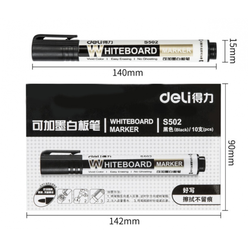 商品名稱:得力S502可加墨白板筆黑色