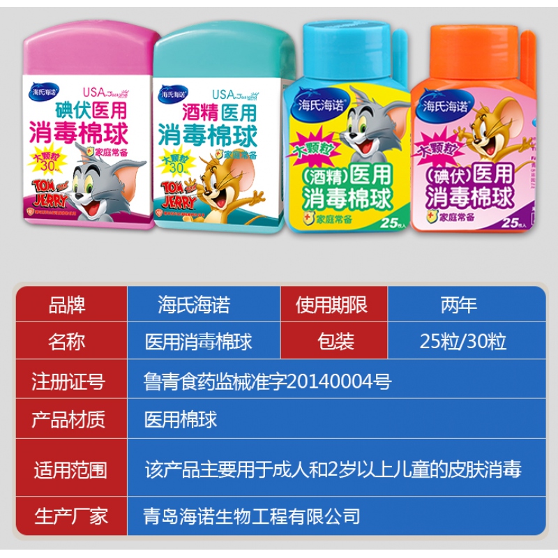 商品名稱:海氏海諾醫(yī)用酒精消毒棉球25粒/瓶