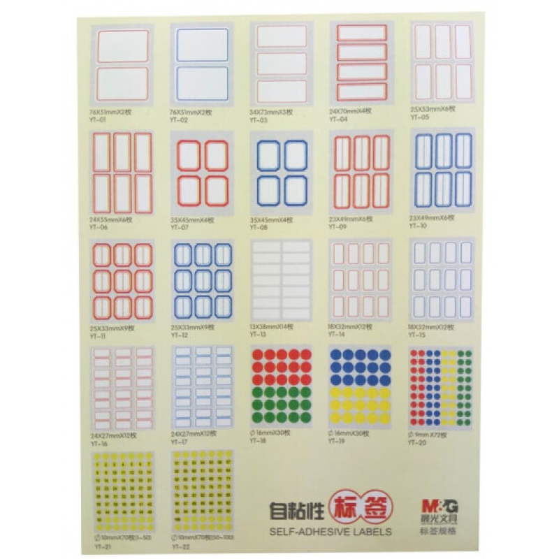晨光YT-17自粘性標(biāo)簽藍(lán)色24*27mm,12枚/張