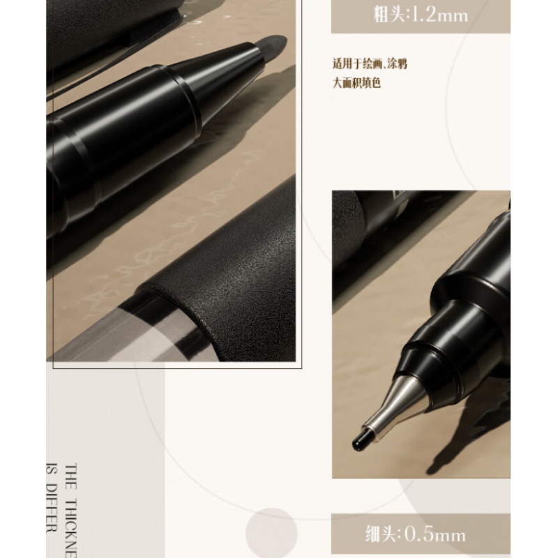 得力6824小雙頭記號(hào)筆黑色0.5-1.2mm