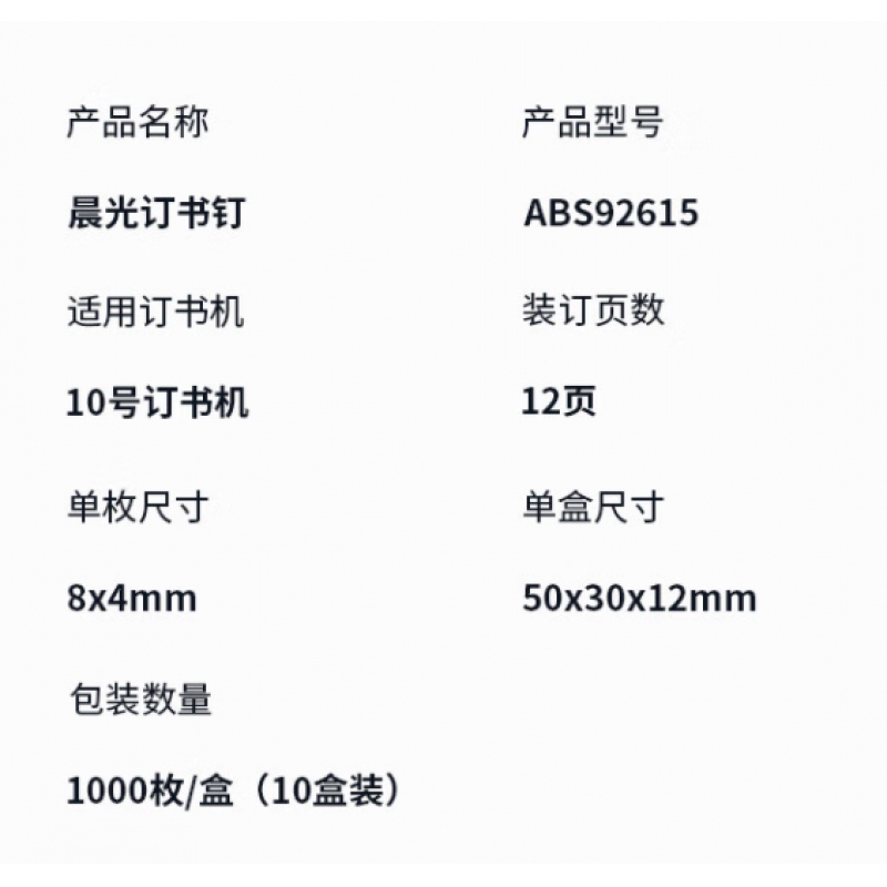 商品名稱:晨光ABS92615訂書釘10#(1000枚/盒)