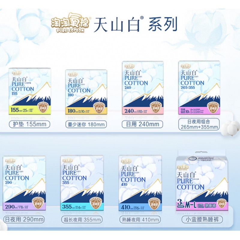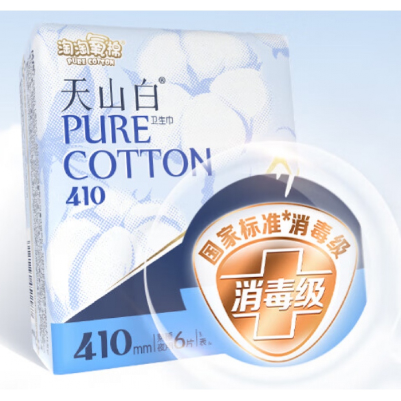 商品名稱:淘淘氧棉天山白純棉消毒級衛(wèi)生巾410mm(6片/包)