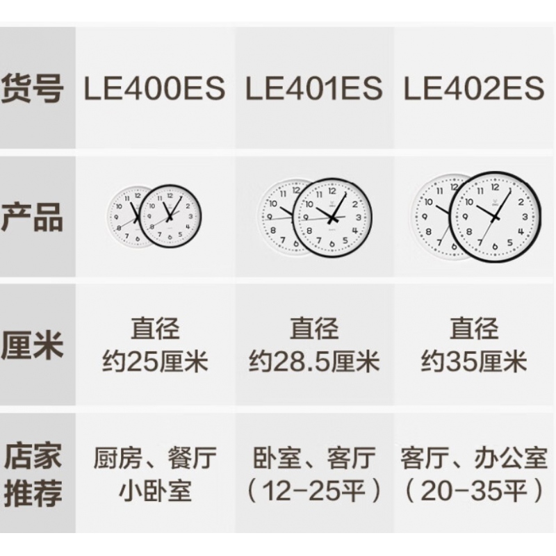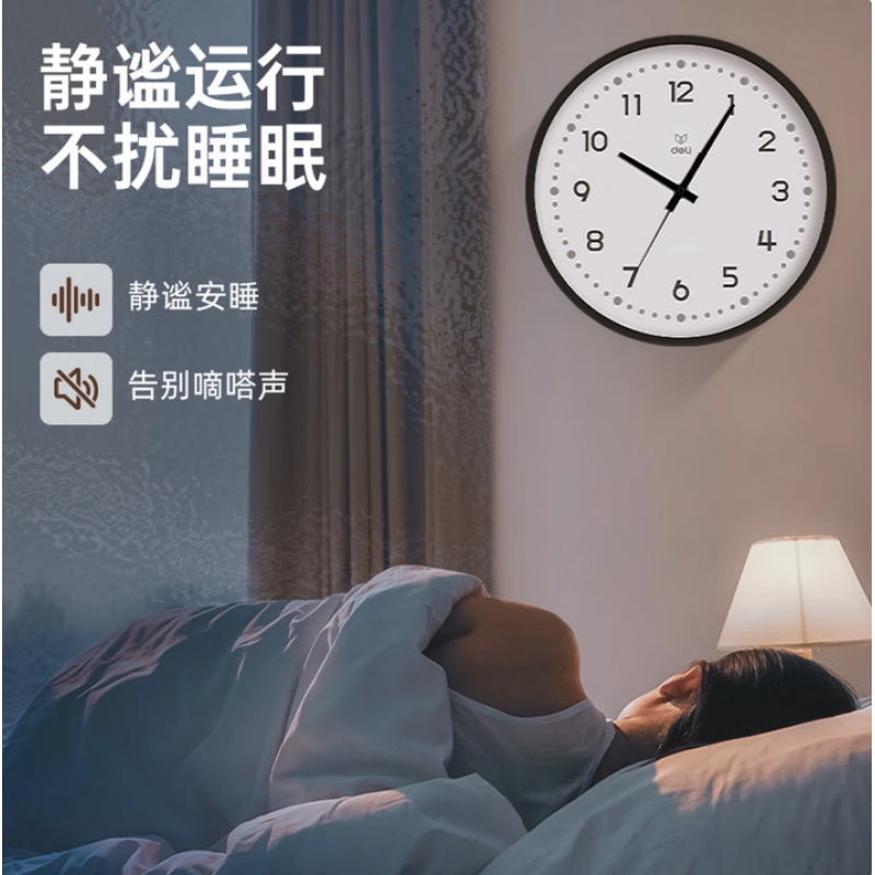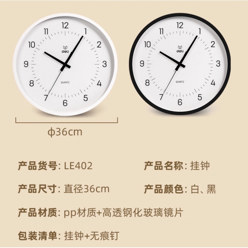 商品名稱:得力LE402靜音圓形掛鐘黑色(直徑36cm)