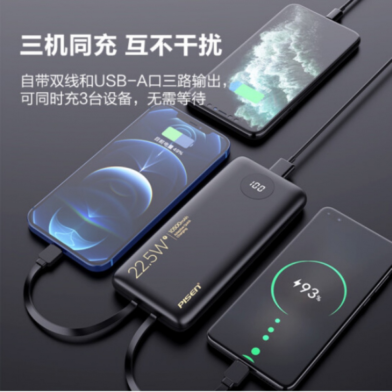 商品名稱:品勝 充電寶 自帶雙線 22.5W快充 10500毫安