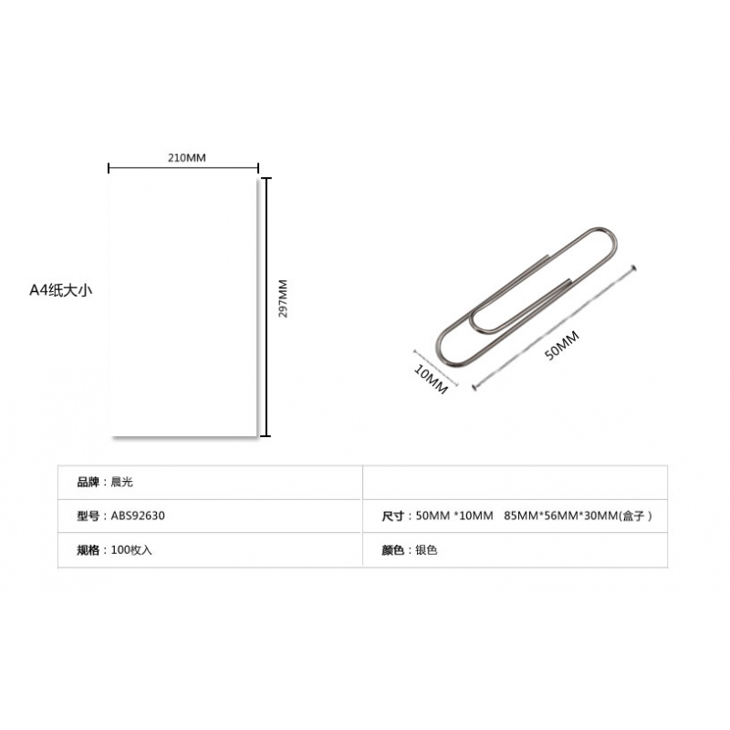商品名稱:晨光ABS92630大號回形針50mm(100枚/盒)