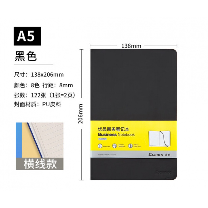 商品名稱:齊心C5902皮面筆記本A5黑色(122張)