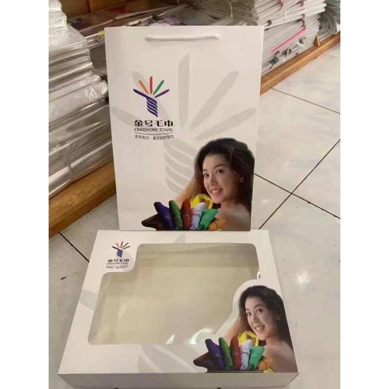 金號赤金緞點(diǎn)毛巾三件套禮盒裝(浴巾毛巾方巾)