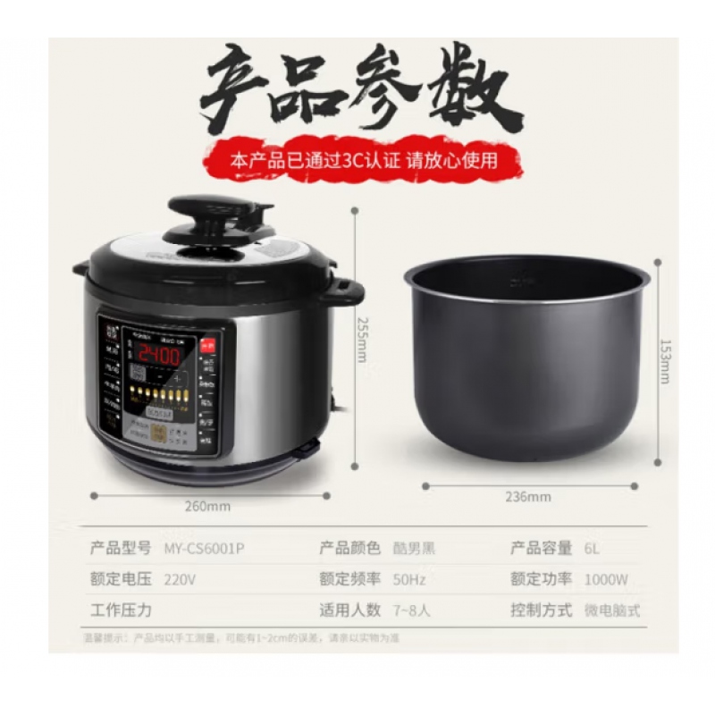 商品名稱:美的PCS6001P 6L雙膽電壓力鍋